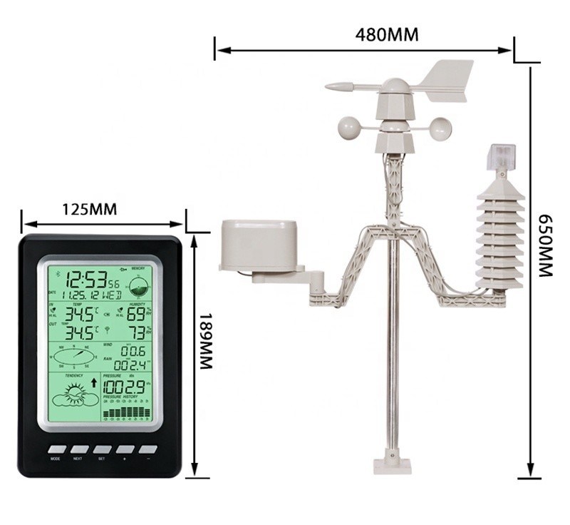 एक आउटडोर ट्रांसमीटर, एक इनडोर एलसीडी रिसीवर, एक मैनुअल, आउटडोर ट्रांसमीटर के लिए निर्धारण शिकंजा का एक पैक